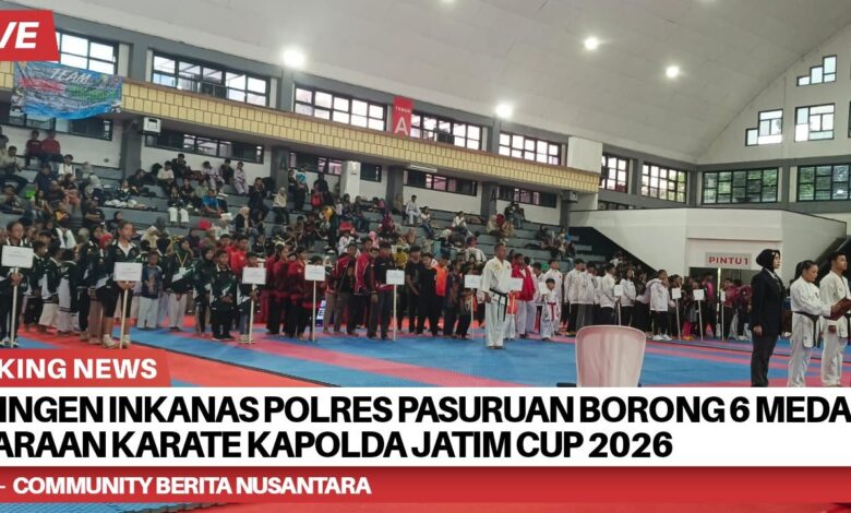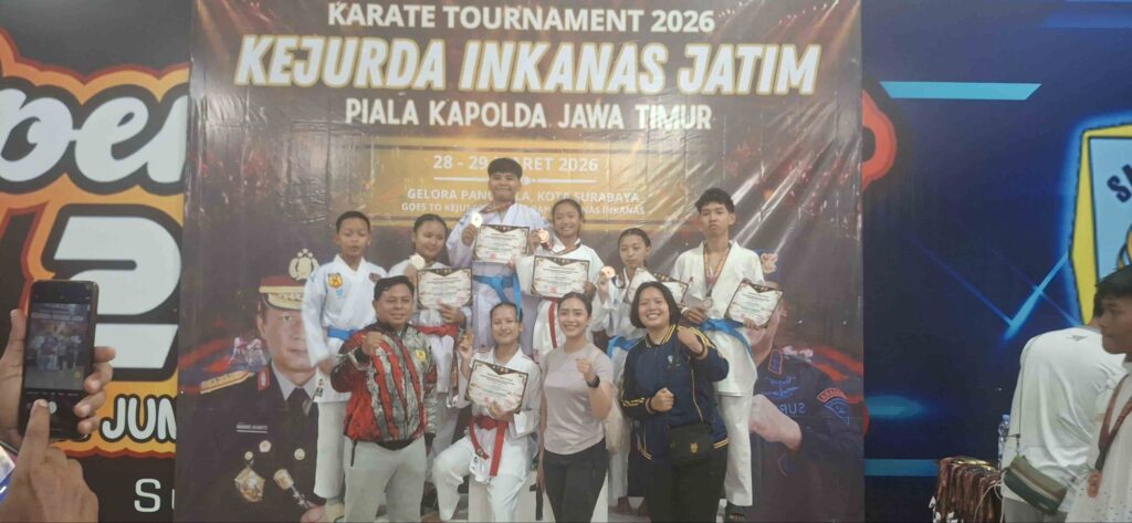 Kontingen karate Institut Karate-Do Nasional (Inkanas) binaan Polres Pasuruan berhasil memborong enam medali dalam Kejuaraan Karate Piala Kapolda Jawa Timur 2026 yang digelar di Surabaya pada Sabtu (28/3/2026).