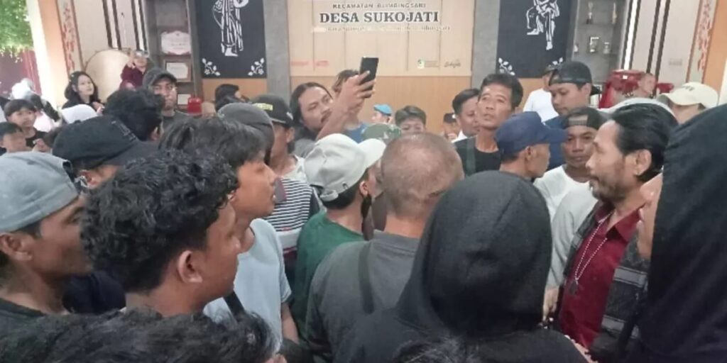 Hingga berita ini diturunkan, suasana di Kantor Desa Sukojati masih tampak riuh.