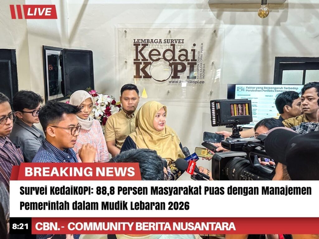Hasil itu disampaikan oleh Head of Research KedaiKOPI, Ashma Nur Afifah, dalam pemaparan survei tahunan KedaiKOPI terkait pelaksanaan mudik Lebaran, Senin (6/4/2026). Survei dilakukan pada 23–30 Maret 2026 terhadap 1.101 responden yang memenuhi kriteria sebagai pemudik Lebaran 2026.