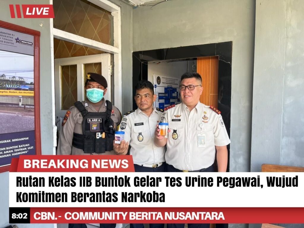 Rumah Tahanan Negara (Rutan) Kelas IIB Buntok menggelar kegiatan tes urine bagi seluruh pegawai dan pejabat sebagai langkah nyata dalam mendukung upaya pemberantasan penyalahgunaan narkotika di lingkungan pemasyarakatan. Kegiatan ini dilaksanakan bekerja sama dengan Satuan Reserse Narkoba Polres Barito Selatan.