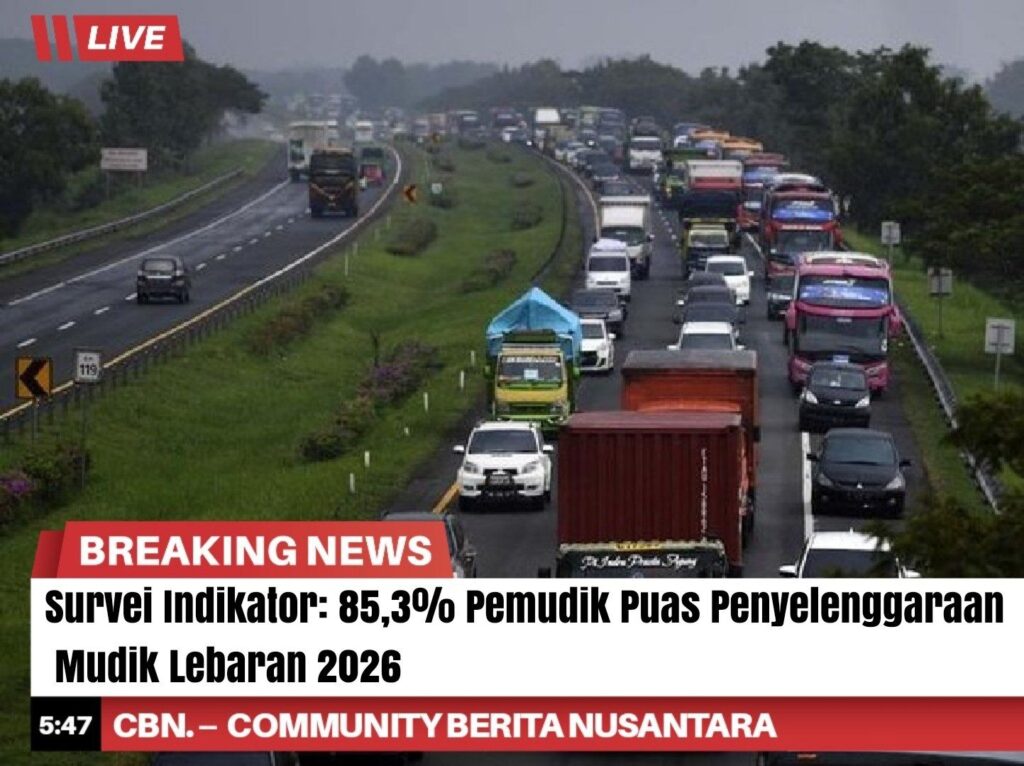 Indikator Politik Indonesia menyampaikan hasil survei terkait kepuasan publik terkait penyelenggaraan mudik Lebaran 2026. Total 85,3 persen pemudik menyatakan puas atas pelayanan mudik Lebaran tahun ini.
