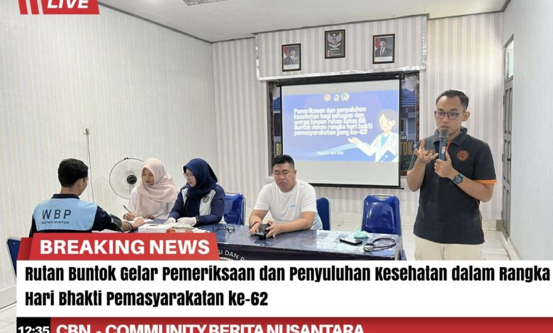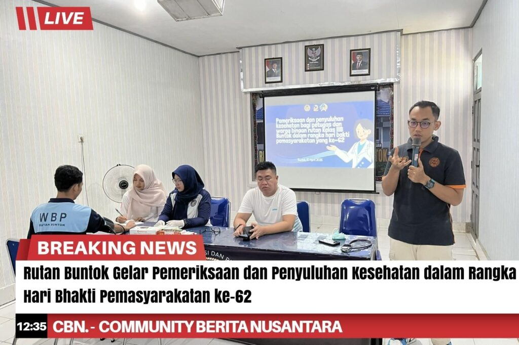 Dalam rangka memperingati Hari Bhakti Pemasyarakatan ke-62, Rumah Tahanan Negara (Rutan) Kelas IIB Buntok menggelar kegiatan pemeriksaan kesehatan bagi pegawai dan Warga Binaan Pemasyarakatan (WBP), sebagai bentuk kepedulian terhadap kesehatan dan kesejahteraan seluruh penghuni rutan.