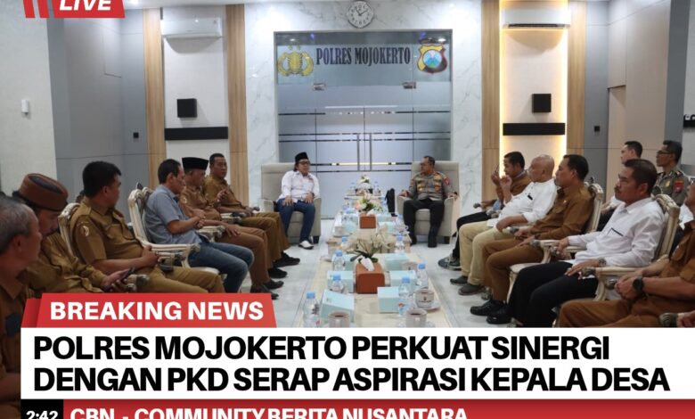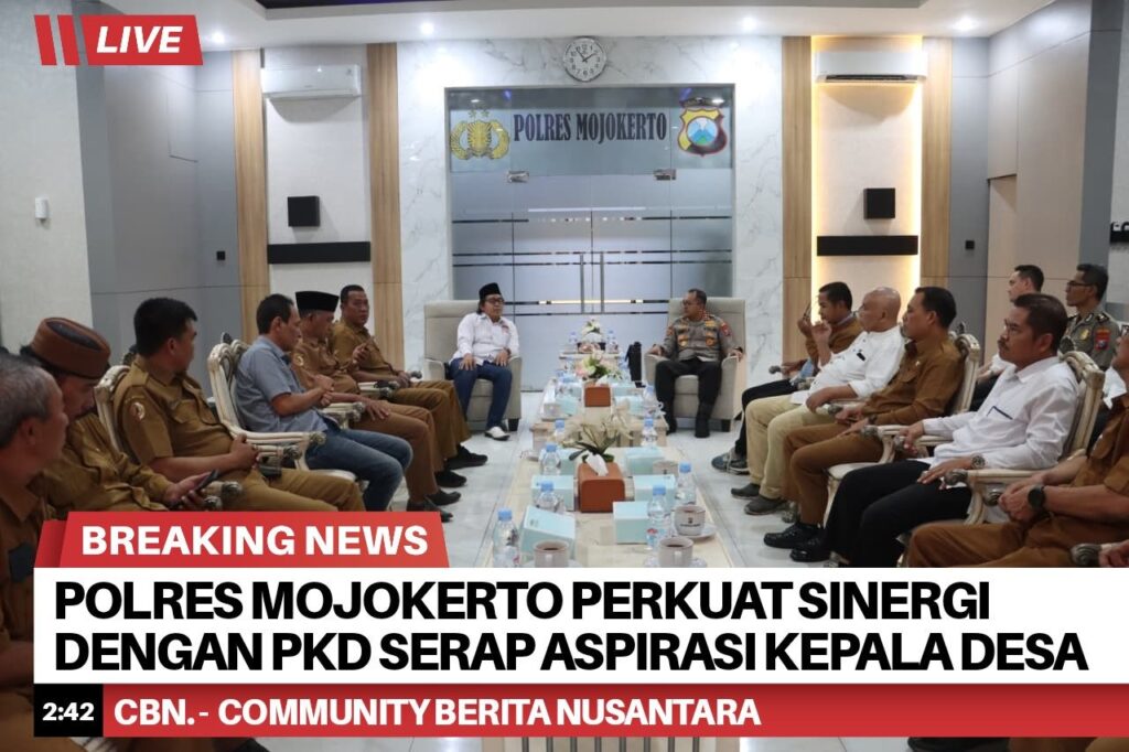 Dalam upaya memperkuat sinergitas antara kepolisian dan pemerintah desa, Kapolres Mojokerto AKBP Andi Yudha Pranata menerima kunjungan silaturahmi Ketua dan Pengurus Persatuan Kepala Desa (PKD) Kabupaten Mojokerto di Ruang Presisi Polres Mojokerto, Jumat (10/4/26).