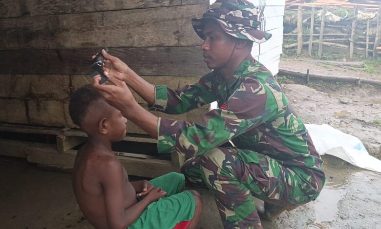 Pos Denom Satgas Yonif 751/Vira Jaya Sakti (VJS) melaksanakan kegiatan sosial dengan memberikan layanan cukur rambut gratis kepada anak-anak di wilayah perbatasan. Kegiatan ini menjadi salah satu bentuk kepedulian prajurit TNI dalam menjaga kerapihan sekaligus mempererat kedekatan dengan masyarakat, khususnya generasi muda. (Sabtu,11/4/2026).