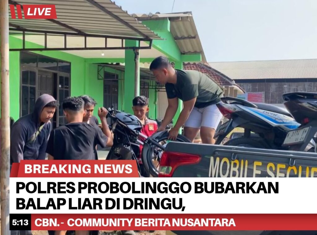 Aksi balap liar yang meresahkan warga di Kecamatan Dringu, Kabupaten Probolinggo, berhasil dibubarkan oleh kepolisian pada Sabtu (11/4/2026) dini hari.