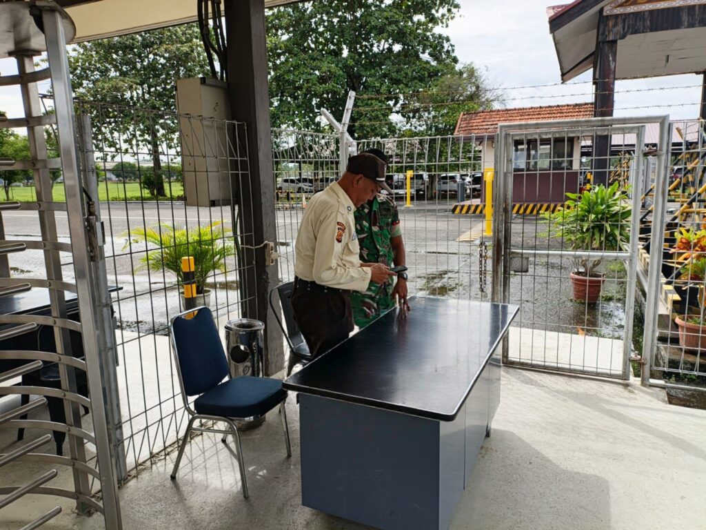Di lapangan, Koptu Rifai terlihat berinteraksi langsung dengan petugas keamanan yang sedang berjaga di pintu masuk. Ia melakukan pengecekan kondisi pos jaga serta memastikan prosedur pengamanan berjalan sesuai ketentuan.