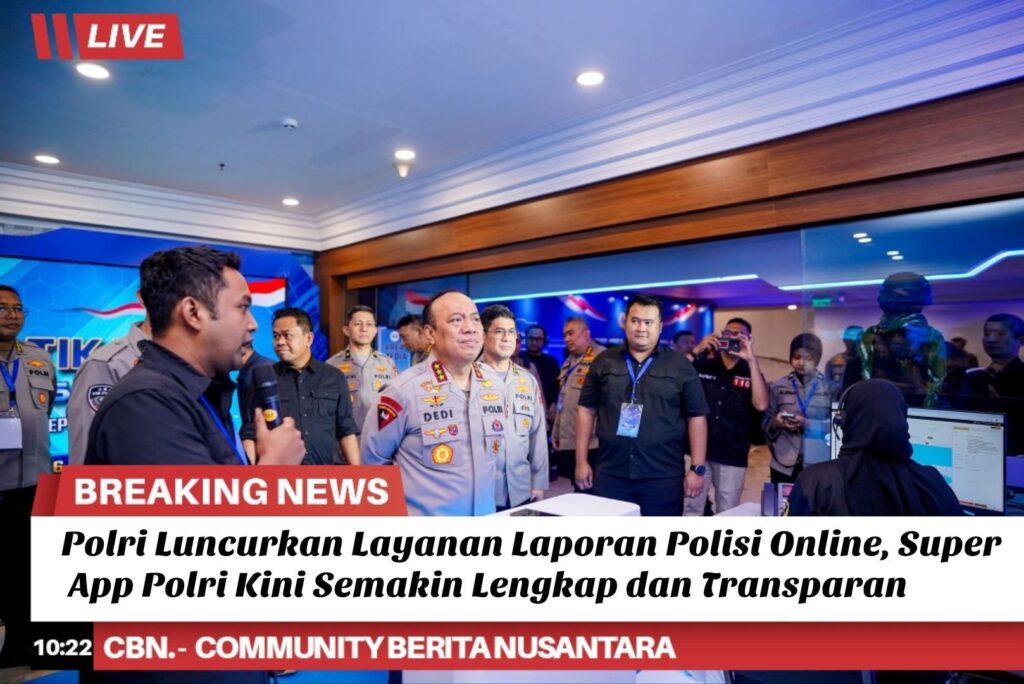 Kepolisian Negara Republik Indonesia terus memperkuat transformasi digital dalam pelayanan publik. Komitmen tersebut ditandai dengan peluncuran Layanan Inovasi Digital Laporan Polisi (LP) dan Laporan Kehilangan secara online melalui Super App Polri oleh Wakil Kepala Kepolisian Republik Indonesia, Prof. Dr. Dedi Prasetyo, S.H., M.Hum., M.Si., M.M.