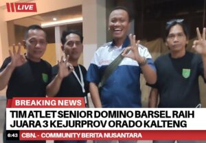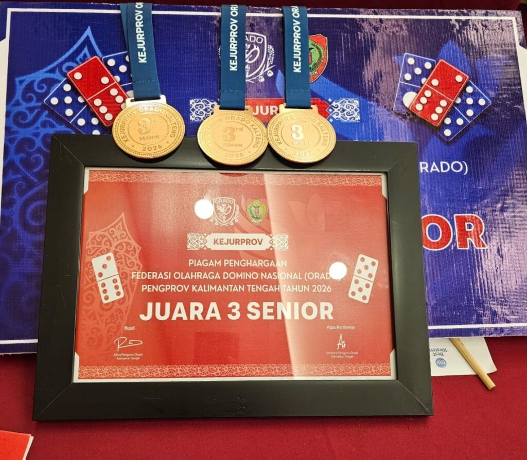 Prestasi membanggakan diraih tim domino senior Kabupaten Barito Selatan (Barsel) pada ajang Kejuaraan Provinsi (Kejurprov) ORADO Kalimantan Tengah 2026 yang digelar di Atrium Duta Mall Palangka Raya, Selasa, (13/04/2026)