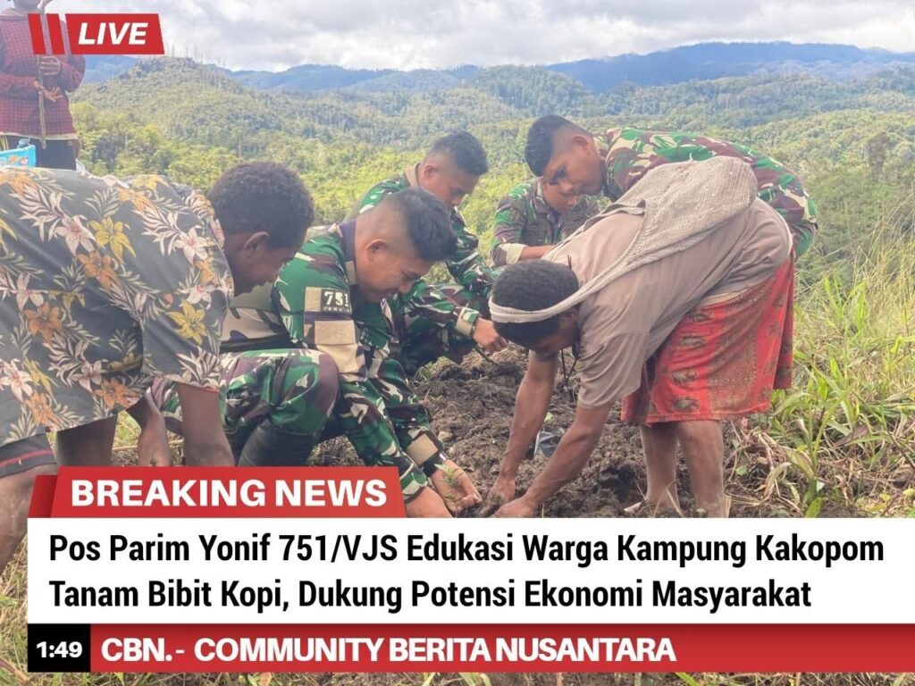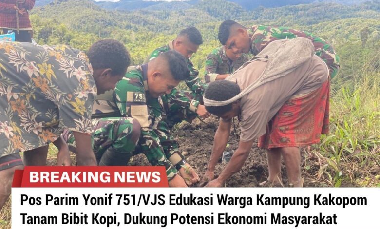Pos Parim Satgas Yonif 751/Vira Jaya Sakti (VJS) melaksanakan kegiatan anjangsana ke Kampung Kakopom dengan memberikan edukasi kepada masyarakat tentang penanaman bibit kopi. Kegiatan ini menjadi salah satu bentuk kepedulian TNI dalam mendorong pemanfaatan potensi lahan dan meningkatkan kesejahteraan masyarakat di wilayah perbatasan. (Rabu, 15/4/2026).