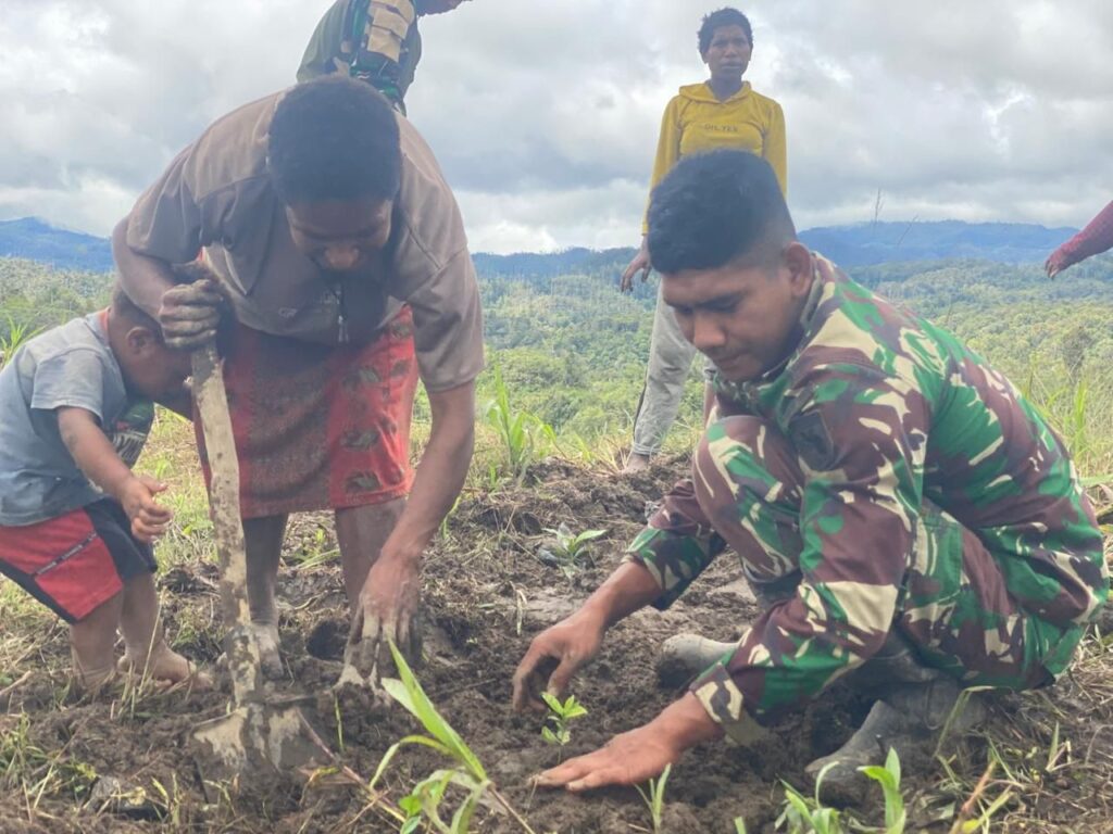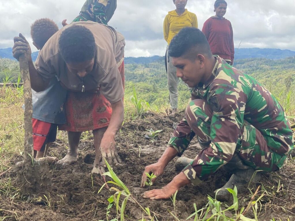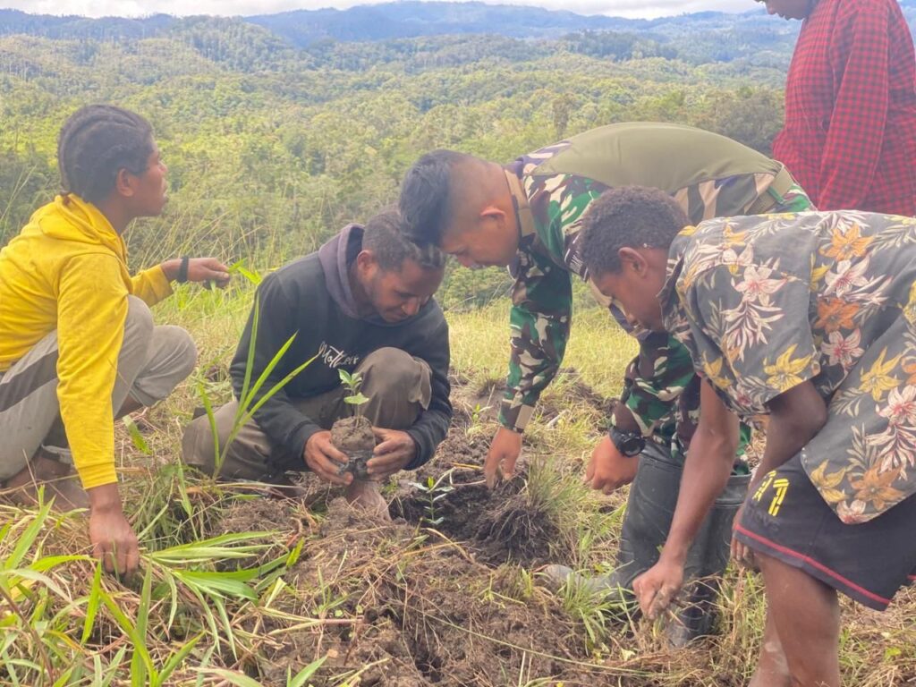 Pos Parim Yonif 751/VJS Edukasi Warga Kampung Kakopom Tanam Bibit Kopi, Dukung Potensi Ekonomi Masyarakat