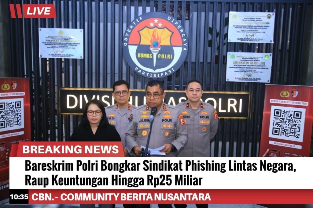 Bareskrim Polri berhasil membongkar sindikat penjualan phishing tools yang beroperasi lintas negara dan meraup keuntungan hingga Rp25 miliar. Dua tersangka berinisial GWL dan FYTP ditangkap di Kupang, Nusa Tenggara Timur, Kamis (9/4/2026).