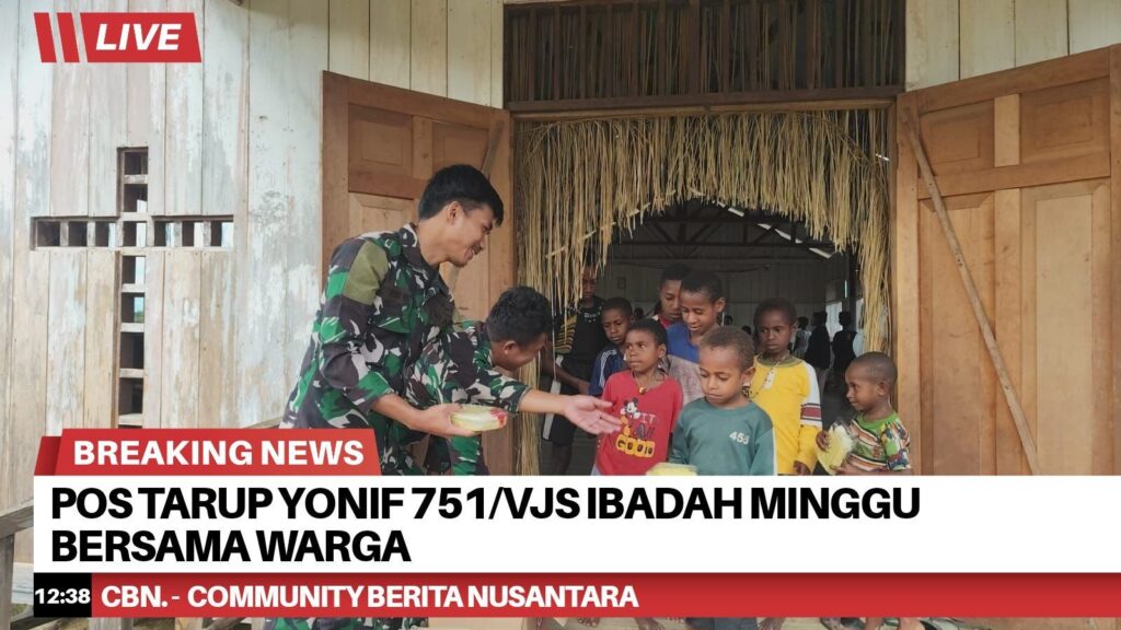 Pos Tarup Satgas Yonif 751/Vira Jaya Sakti (VJS) melaksanakan ibadah Minggu bersama masyarakat Tarup di Gereja Katolik Kristus Bangkit sebagai wujud kebersamaan dan toleransi dengan masyarakat di wilayah binaan. Kegiatan ini dipimpin oleh Danpos Tarup Letda Inf Elpidius dan berlangsung penuh khidmat, hangat, serta sarat nilai kekeluargaan. (Senin,20/4/2026).