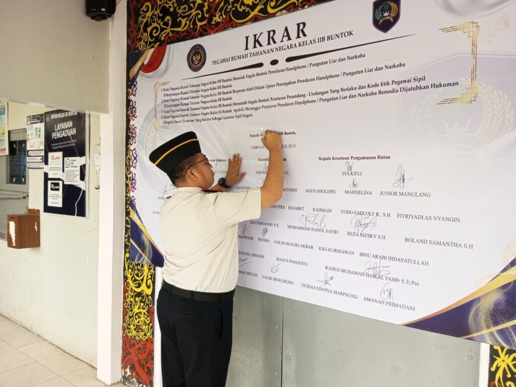 Usai pembacaan ikrar, kegiatan dilanjutkan dengan penandatanganan deklarasi Zero Halinar oleh seluruh pegawai Rumah Tahanan Negara Kelas IIB Buntok. Penandatanganan ini menjadi simbol komitmen nyata dalam mendukung upaya pencegahan dan pemberantasan Halinar di lingkungan rutan.