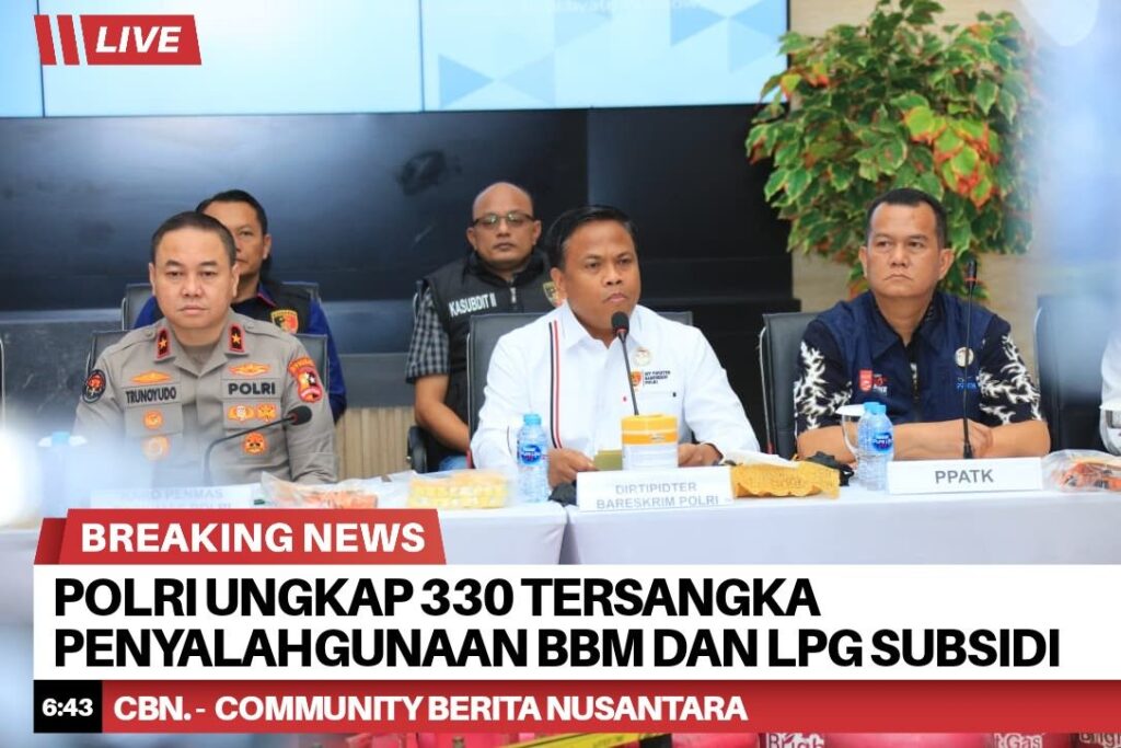 Bareskrim Polri bersama Polda jajaran kembali mengungkap tindak pidana penyalahgunaan BBM dan LPG bersubsidi dalam periode 7 hingga 20 April 2026. Dalam kurun waktu 13 hari tersebut, aparat berhasil mengamankan 330 tersangka di 223 tempat kejadian perkara (TKP).