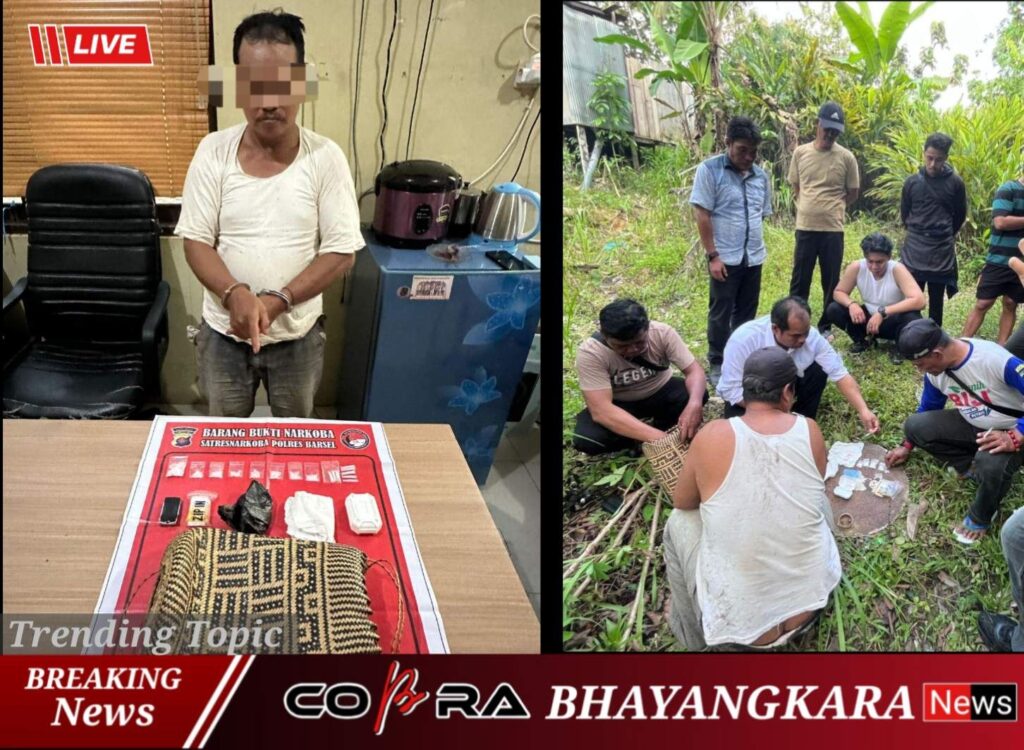 Satresnarkoba Polres Barito Selatan (Barsel) berhasil melakukan penangkapan dan Penggeledahan terhadap pelaku Tindak Pidana Narkotika jenis Sabu bertempat Di Belakang Sebuah Rumah Jalan EX PT Rimba Ayu Kananai, Rt.005, Rw.004, Desa Bipak Kali, Kec. Gunung Bintang Awai, Kab. Barito Selatan, Prov. Kalimantan Tengah. Senin, (20/04/2026) sekitar pukul 15.30. WIB
