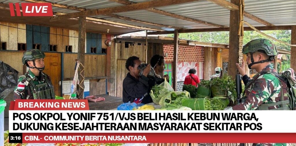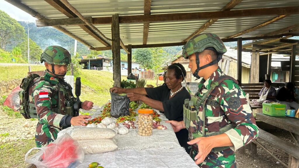 Pos Okpol Satgas Yonif 751/Vira Jaya Sakti (VJS) melaksanakan kegiatan membeli hasil kebun masyarakat di sekitar pos sebagai bentuk kepedulian terhadap peningkatan kesejahteraan warga di wilayah binaan. Kegiatan ini dipimpin oleh Danpos Okpol Letda Inf Lupi Kuncoro. (Kamis, 23/4/2026).