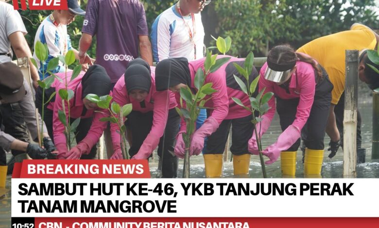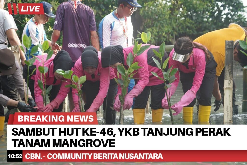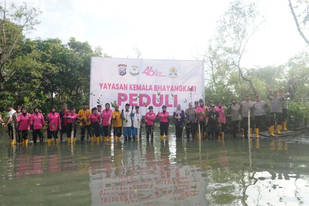 Yayasan Kemala Bhayangkari (YKB) Cabang Polres Pelabuhan Tanjung Perak melakukan aksi nyata pemulihan lahan kritis dengan menanam ratusan bibit pohon mangrove dan bakau di kawasan tersebut, Rabu (22/4/2026) pagi.