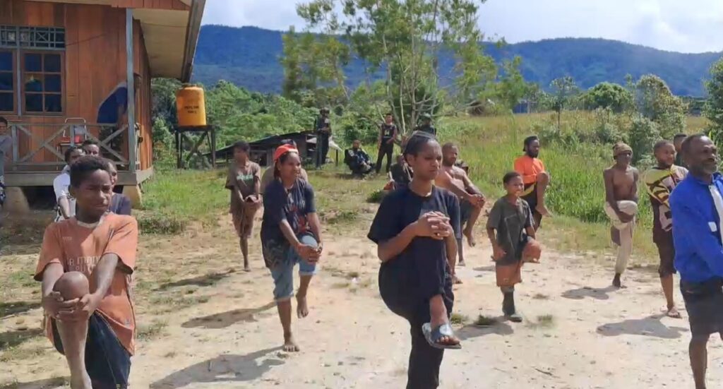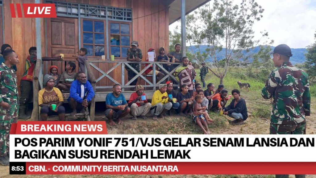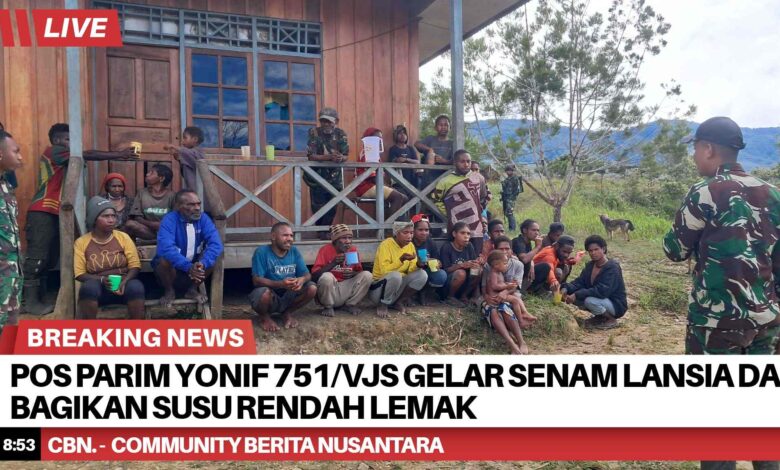 Pos Parim Satgas Yonif 751/Vira Jaya Sakti (VJS) melaksanakan kegiatan senam lansia di Kampung Kakopom sebagai bentuk kepedulian terhadap kesehatan masyarakat, khususnya para lanjut usia. Kegiatan ini dipimpin oleh Danpos Parim Letda Inf Ilham dan disambut antusias oleh warga setempat. (Jumat, 24/4/2026).