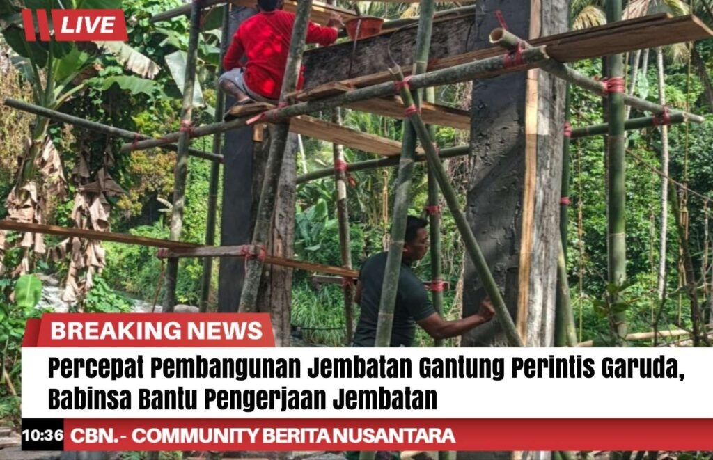 Program pekerjaan fisik pembangunan jembatan gantung Perintis Garuda, terus dipercepat oleh jajaran Kodim 1310/Bitung melalui peran aktif personel Babinsa di lokasi.