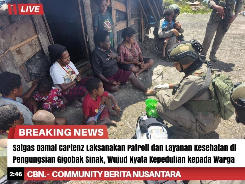 Satgas Operasi Damai Cartenz terus menunjukkan komitmennya dalam menjaga keamanan sekaligus memberikan pelayanan kemanusiaan kepada masyarakat. Pada Jumat (24/4/2026), personel melaksanakan patroli jalan kaki dan pelayanan kesehatan bagi warga di lokasi pengungsian Kampung Gigobak, Distrik Sinak, Kabupaten Puncak, Papua Tengah.