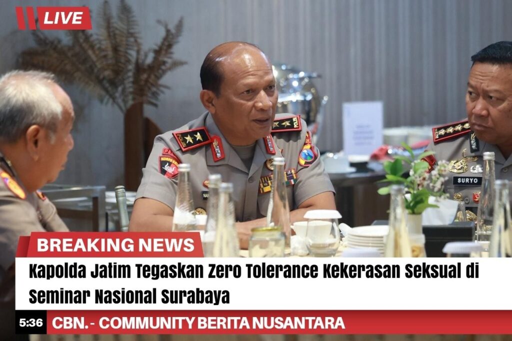 Polda Jawa Timur menggelar Seminar Nasional bertema “Membangun Kesadaran dan Aksi Nyata Menghapus Kekerasan Seksual Berbasis Relasi Kuasa” digelar di Surabaya, Senin (27/4/2026).