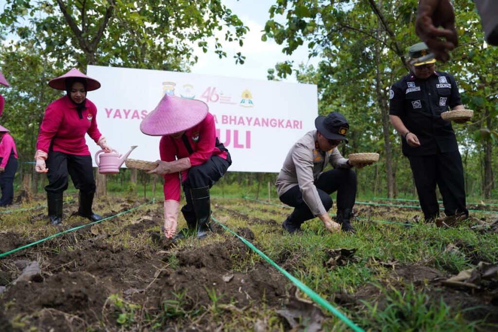 Polres Bojonegoro Polda Jatim bersama pengurus YKB Cabang Bojonegoro menggandeng Perum Perhutani KPH Bojonegoro dan kelompok tani menggelar kegiatan penanaman jagung dan ketela.