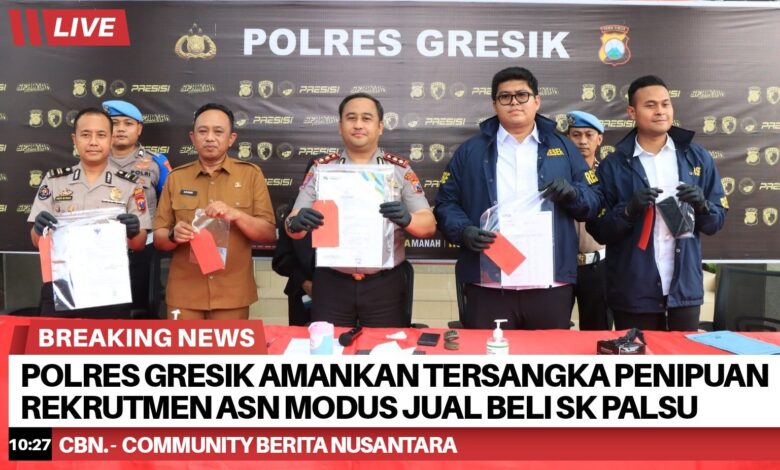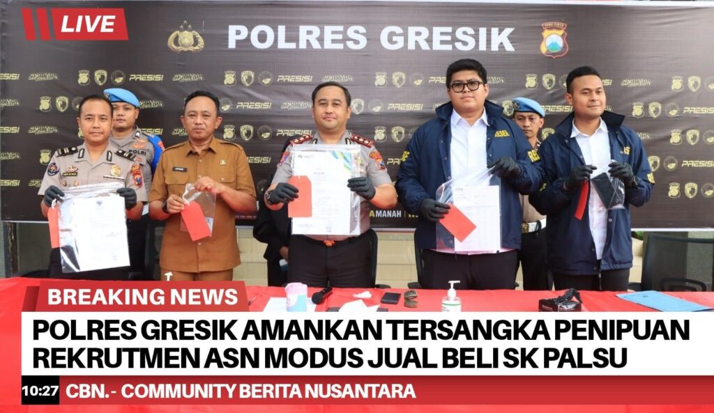 Satreskrim Polres Gresik Polda Jatim berhasil mengungkap kasus dugaan penipuan dan pemalsuan Surat Keputusan (SK) pengangkatan ASN yang merugikan banyak korban hingga miliaran rupiah.