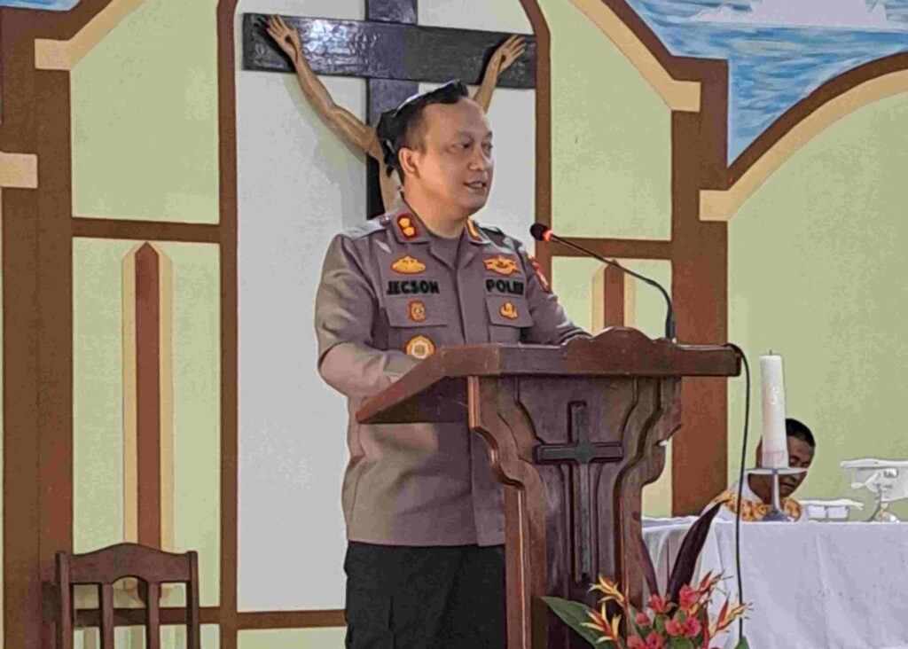 Kapolres Kabupaten Barito Selatan (Barsel) AKBP Jecson R Hutapea, S.I.K,.M.H pada Minggu pagi 4 Mei 2025 bertempat di Gereja Santo Paulus Buntok dalam kegiatan Ibadah Minggu sekaligus silaturahmi bersama jemaat dan pengurus Gereja