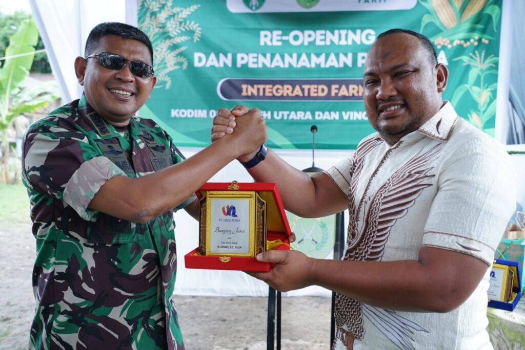Direktur Utama Vinca Rosea Fram, H. Azhari, ST., MSM., dalam sambutannya mengungkapkan bahwa lahan seluas 3 hektar ini telah dikelola bersama Kodim 0103/Aut sejak tahun 2017 dengan konsep 3M: menanam, memelihara, dan memproduksi. “Lahan ini sempat vakum dari tahun 2023 hingga awal 2025 dan rusak. Namun, berkat wadah Urban Farmers Kota Lhokseumawe dan Kodim 0103/Aut, kami telah membenahi lahan ini hingga kini sebagian besar fasilitas sudah berdiri kokoh dengan konstruksi beton dan baja,” ujar Azhari.