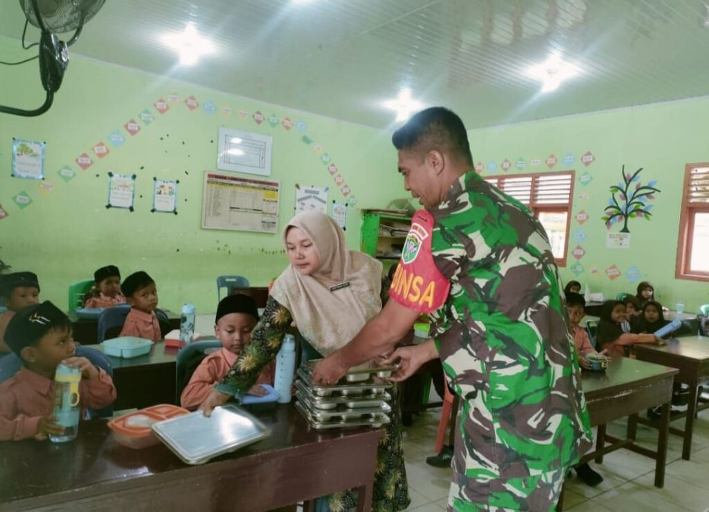 Sebagai bentuk implementasi dukungan tersebut, para Babinsa secara terpadu mendampingi langsung proses penyaluran 2.861 paket makan bergizi untuk seluruh siswa dari jenjang Kelompok Bermain (KB)/TK hingga SMA/sederajat dalam wilayah Kuala Batee.