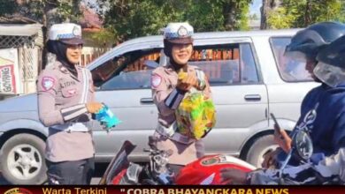 Satlantas Bondowoso Peduli Sesama Bagikan Minuman Teh Segar Untuk Yang Antri BBM