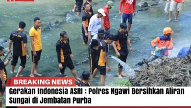 Gerakan Indonesia ASRI : Polres Ngawi Bersihkan Aliran Sungai di Jembatan Purba