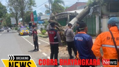 Patroli Sat Samapta Polres Bondowoso gercep menerima laporan pohon tumbang oleh masyarakat