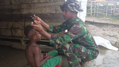 Pos Denom Satgas Yonif 751/VJS Cukur Gratis Rambut Anak-Anak Perbatasan, Wujud Kepedulian TNI bagi Generasi Muda